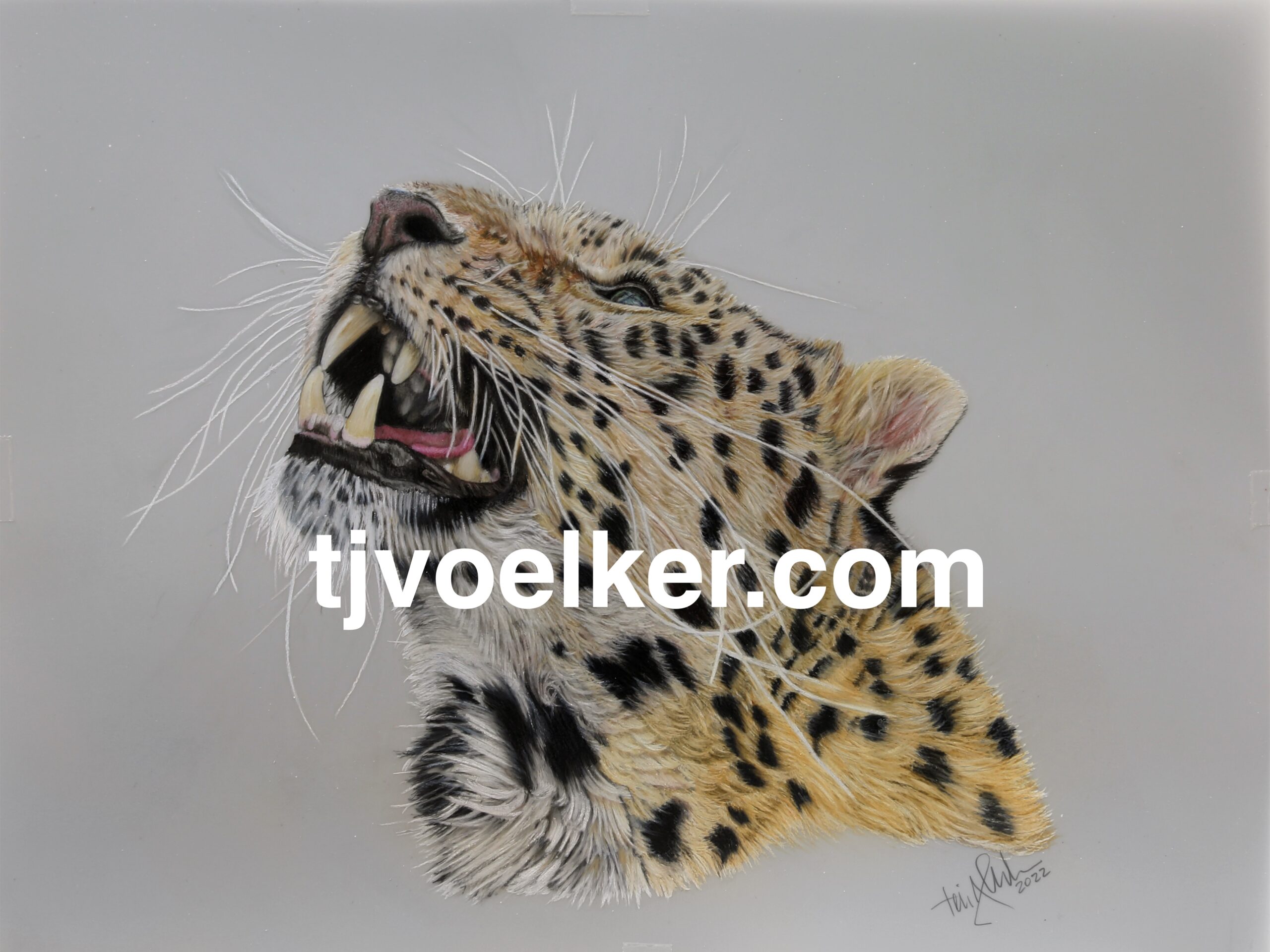 This is an Amur Leopard. They are found in the Russian Far East. They can run at speeds up to 37 miles per hour and can leap more than 19 feet horizontally and 10 feet vertically. The print is a Giclee print. It is printed on acid free archival paper using archival ink.