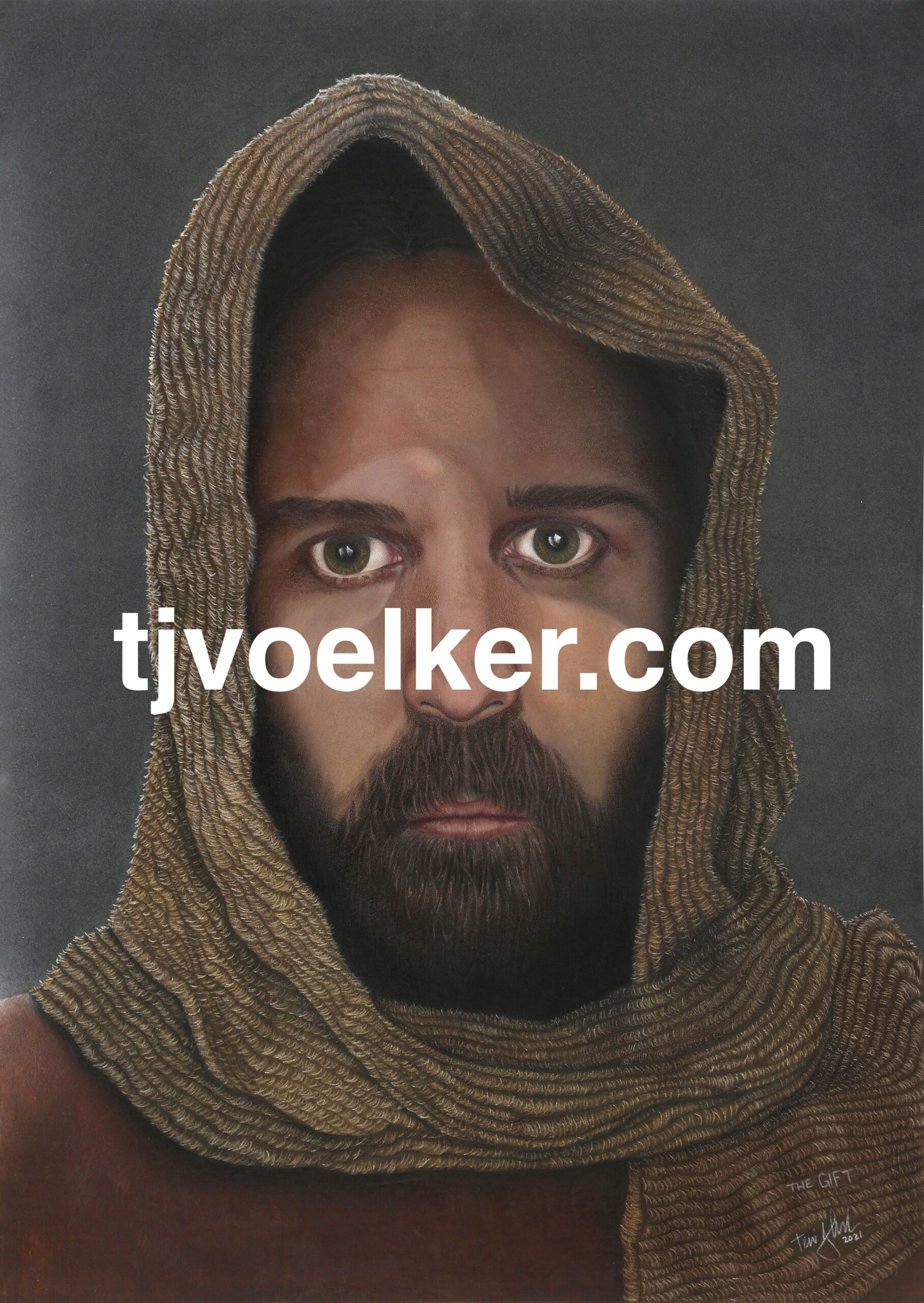 I wanted to depict Yeshua in the Garden of Gethsemane and could find no photo references that matched what was in my head. Luckily, one of my artist friends has a son who was more than happy to take some photographs and send them to me. This painting is also one of the few on my website that is done entirely in colored pencil on Pastelmat paper. The original hangs in my house and is quite large. This painting took many, many hours to complete.